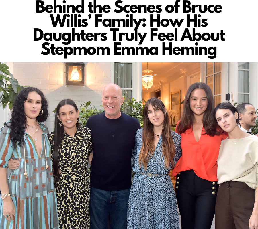 In 2007, Bruce found love again with British model and actress Emma Heming. They married in 2009, and in the following years, welcomed two daughters together—Mabel in 2012 and Evelyn in 2014. Despite Bruce’s past marriage and his three older daughters, Emma quickly became a beloved member of the family, and the blended unit appeared to fit together seamlessly. The entire family, including Moore, is often seen together, showing that they’ve built a loving and supportive dynamic that transcends traditional family boundaries.